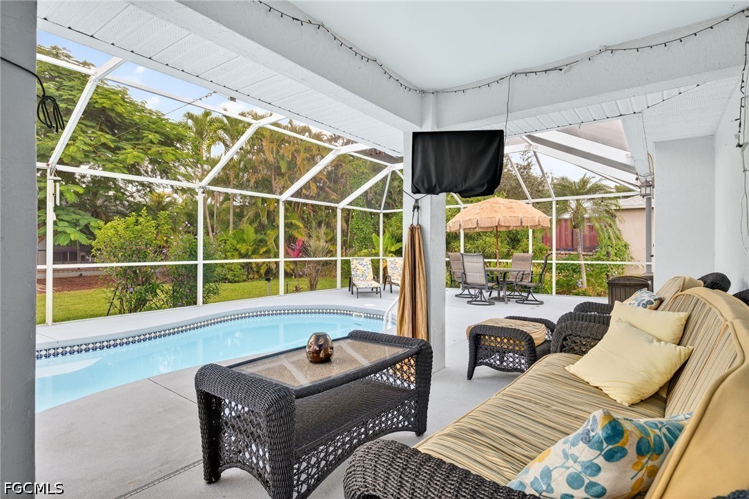 Welcome to your private slice of paradise! This beautifully maintained 3-bedroom, 2-bathroom pool home is ideally situated just off the highly sought-after Surfside Blvd, nestled among picturesque streets lined with royal palms and stunning Gulf-access homes.