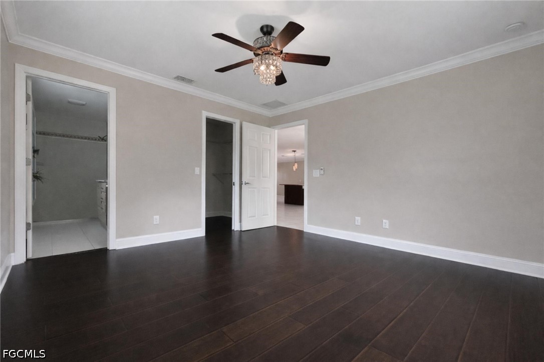 The primary suite offers a generous walk-in closet, providing plenty of room for storage and organization.