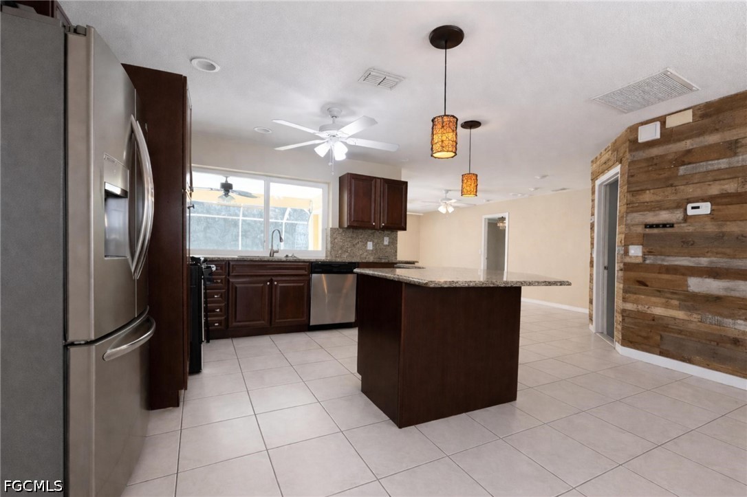 Step inside to find beautiful tile flooring throughout, combining durability with a clean, modern look. The home is filled with unique designer touches, including a stylish accent pallet wood wall and faux brick feature wall, adding warmth and character throughout.