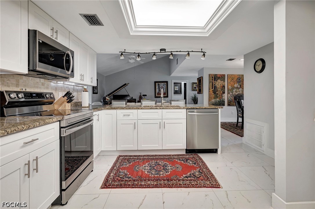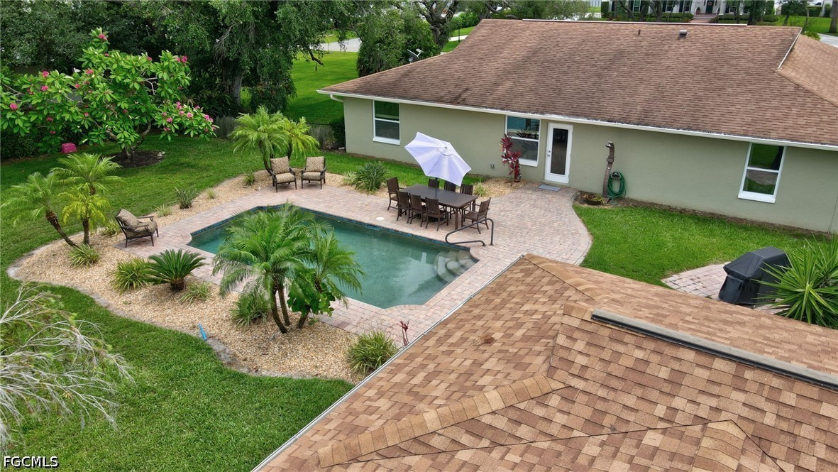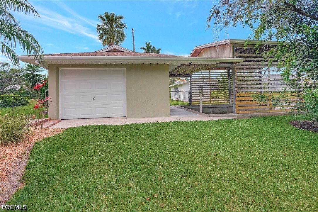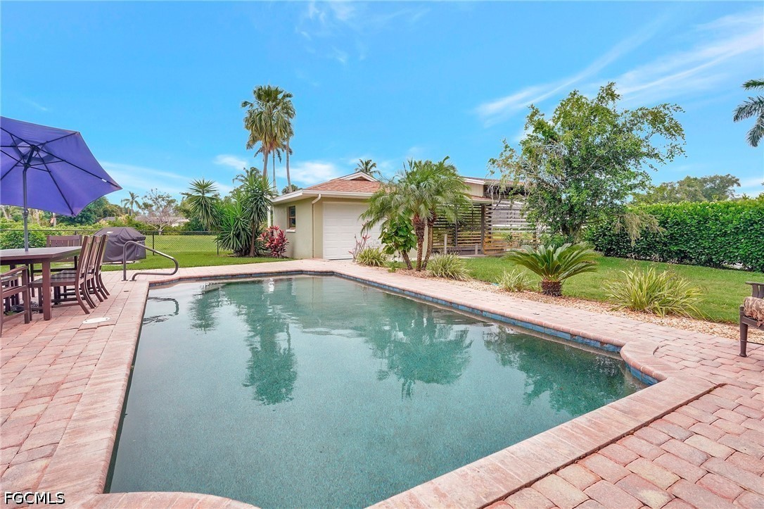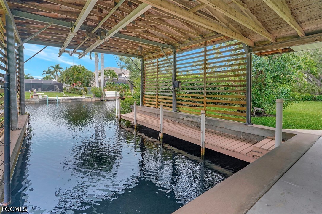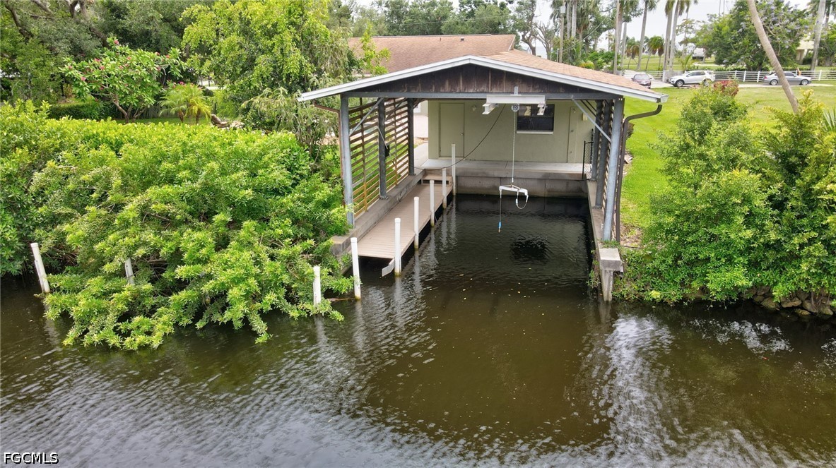 LIVE the Florida lifestyle in this unique home in an amazing area. Beautiful pool home in exclusive Overiver Shores in North Ft Myers. 3 bedroom, 2 bath must see home. New roof, redone, storm ready with impact windows and just installed Garrison flood panels on every door. Split floorplan, direct access canal front home. NEW ROOF. Unique boat house with mini split. Beautiful kitchen, lots of cabinets, eat in kitchen, vaulted ceilings. Upgraded electrical. Fenced yard. Huge master bedroom with HUGE master closet. No HOA. Laundry features in huge 2 car oversized garage. New central air conditioner. Boat canopy cover, electric and water available at the dock. Partial river view. Close to everything. Restaurants, shopping, pharmacies, health care. This is a dream home. Wonderful neighborhood.