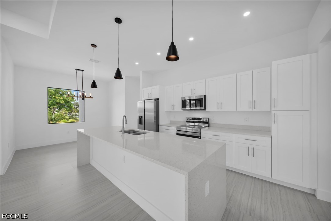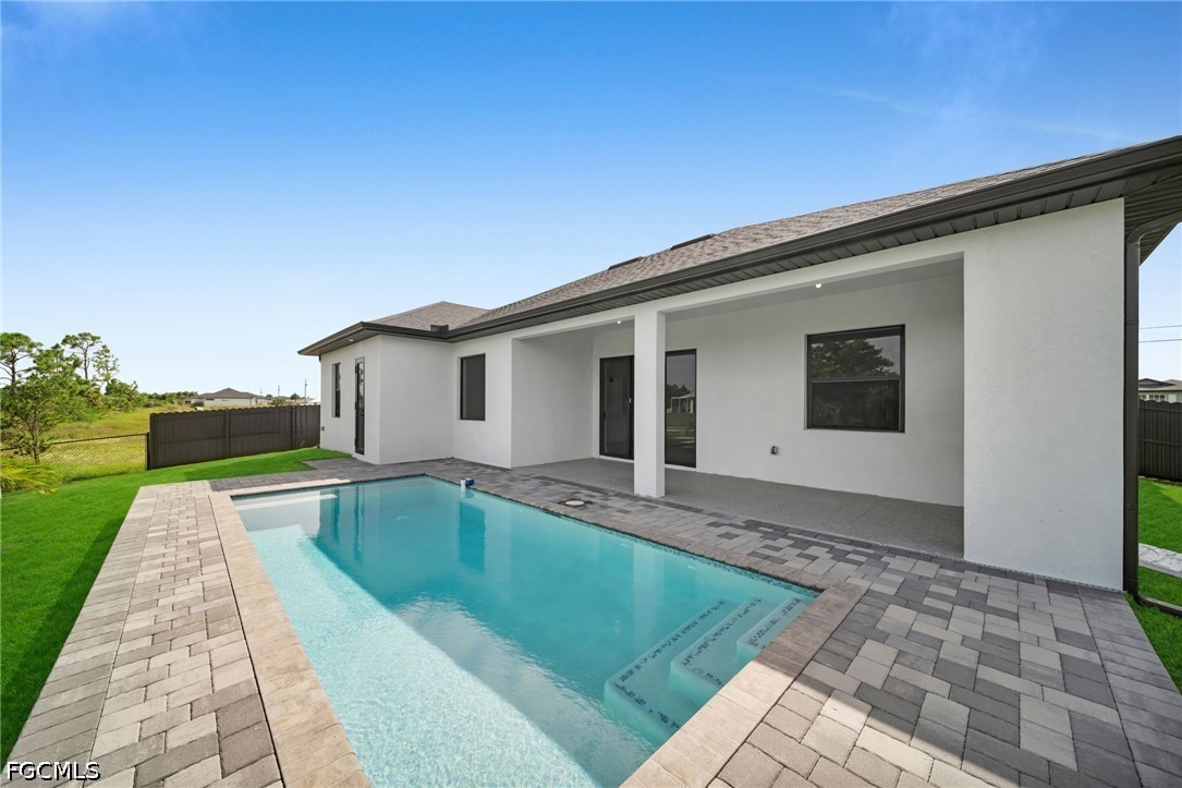 Be the first family to occupy this new construction pool home! With 4 bedrooms and 3 bathrooms, this home is perfect for any size family. Located in the Gator Circle neighborhood of Cape Coral, short driving distance to schools, parks and groceries stores. Modern finishes throughout the home include porcelain tile, quartz, wood shaker cabinets and stainless-steel appliances. The backyard is perfect for entertaining, with a spacious lanai, outdoor bar and sink and pool. This home is ready for immediate occupancy, schedule your private showing today!