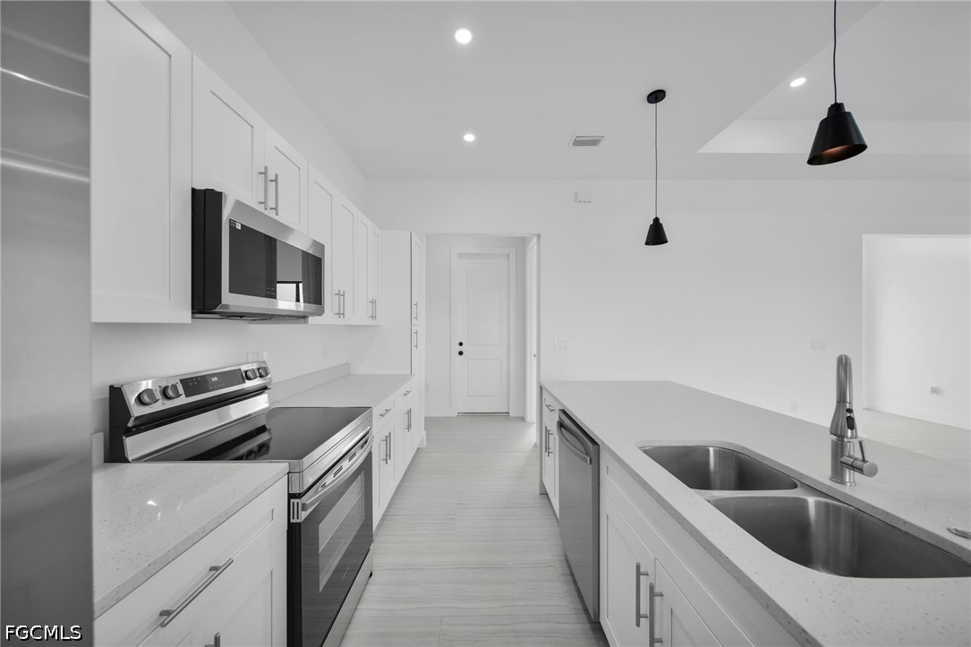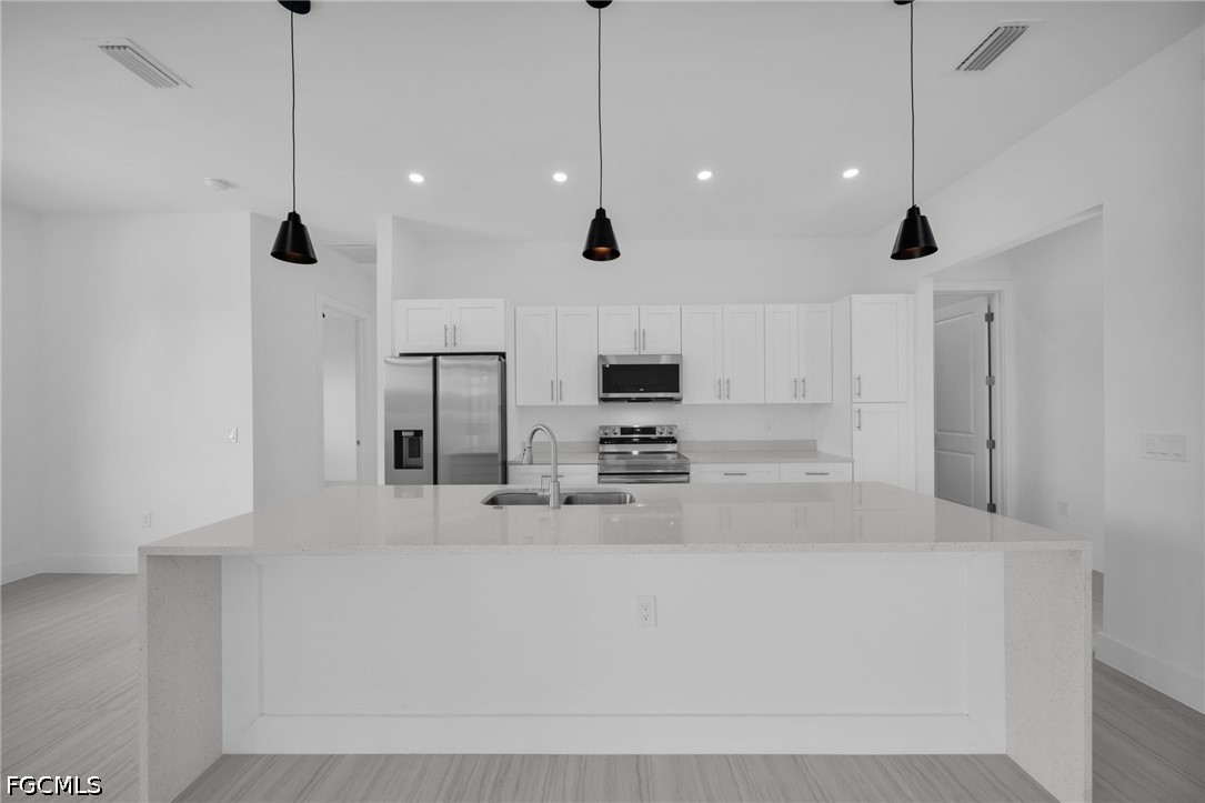 Be the first family to occupy this new construction pool home! With 4 bedrooms and 3 bathrooms, this home is perfect for any size family. Located in the Gator Circle neighborhood of Cape Coral, short driving distance to schools, parks and groceries stores. Modern finishes throughout the home include porcelain tile, quartz, wood shaker cabinets and stainless-steel appliances. The backyard is perfect for entertaining, with a spacious lanai, outdoor bar and sink and pool. This home is ready for immediate occupancy, schedule your private showing today!