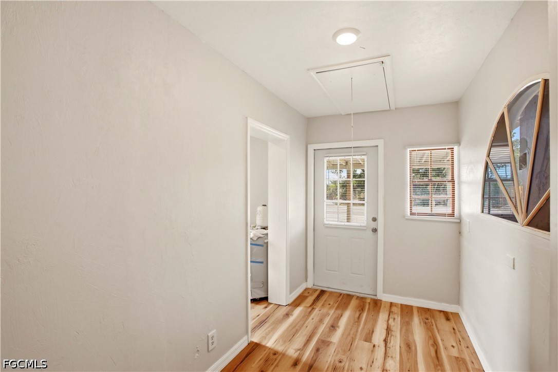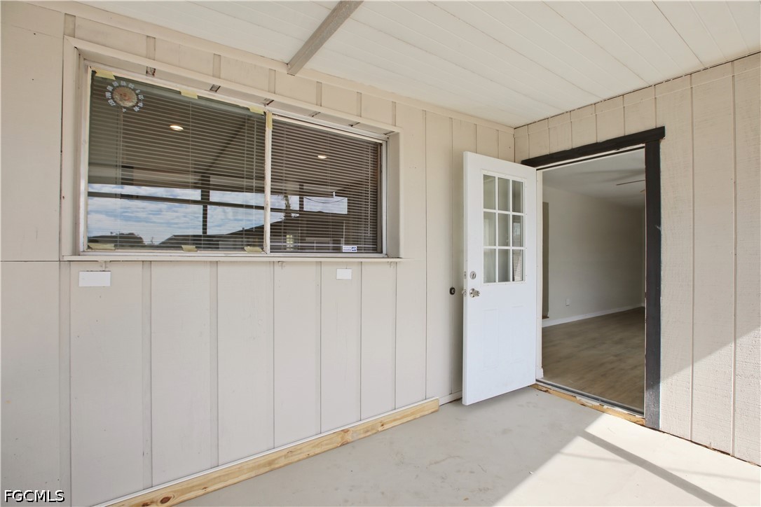 This freshly remodeled 2/1 sits on its own private driveway in North Fort Myers, tucked away with the kind of quiet that's getting harder to find. Clean stucco exterior, black accent shutters, and a wide concrete driveway that belongs entirely to you.