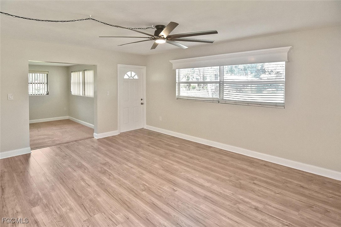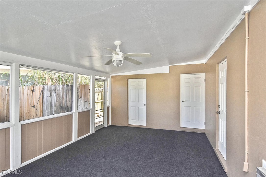 Adorable concrete block home featurning two spacious bedrooms. Perfect as a starter home or investment opportunity!This home is light and airy, with a versatile bonus room ideal for a home office or TV room. Outside you will find a covered carport and a screened lanai/Florida Room, complete with dedicated laundry and storage areas. Situated on a quiet, no-thru-traffic street, this home is just minutes from the Fort Myers River District. The large, fully fenced backyard is perfect for kids or pets, and has plenty of room for a garden and a permitted storage shed. Homes like this don't last long. Schedule your showing today!