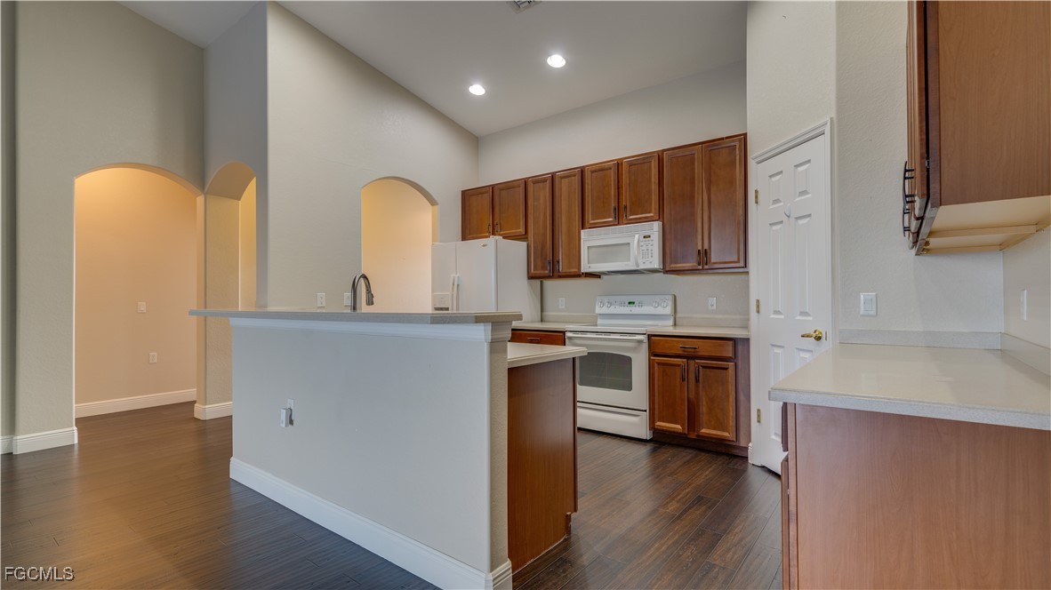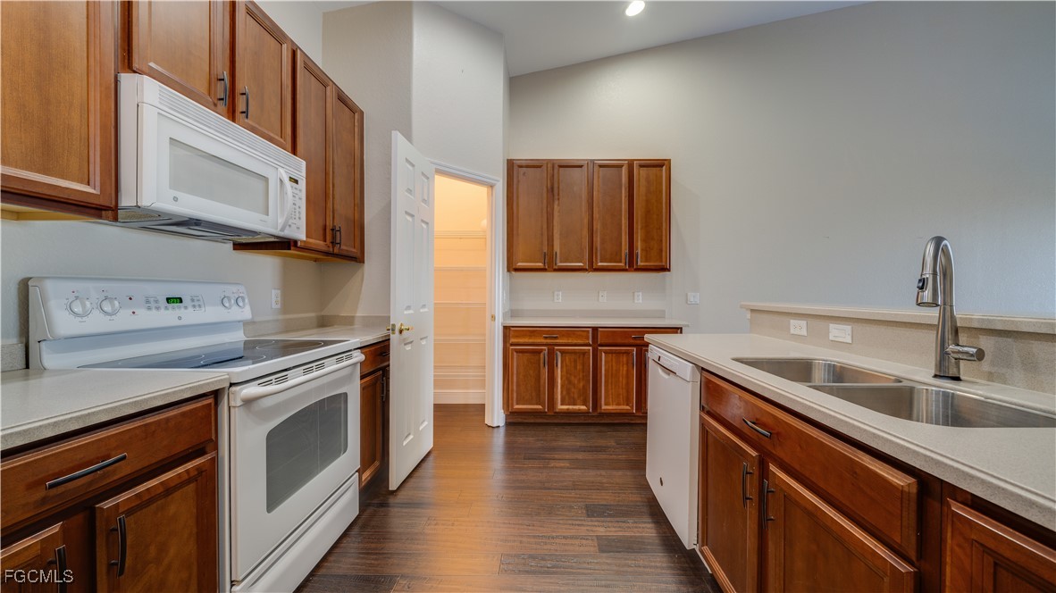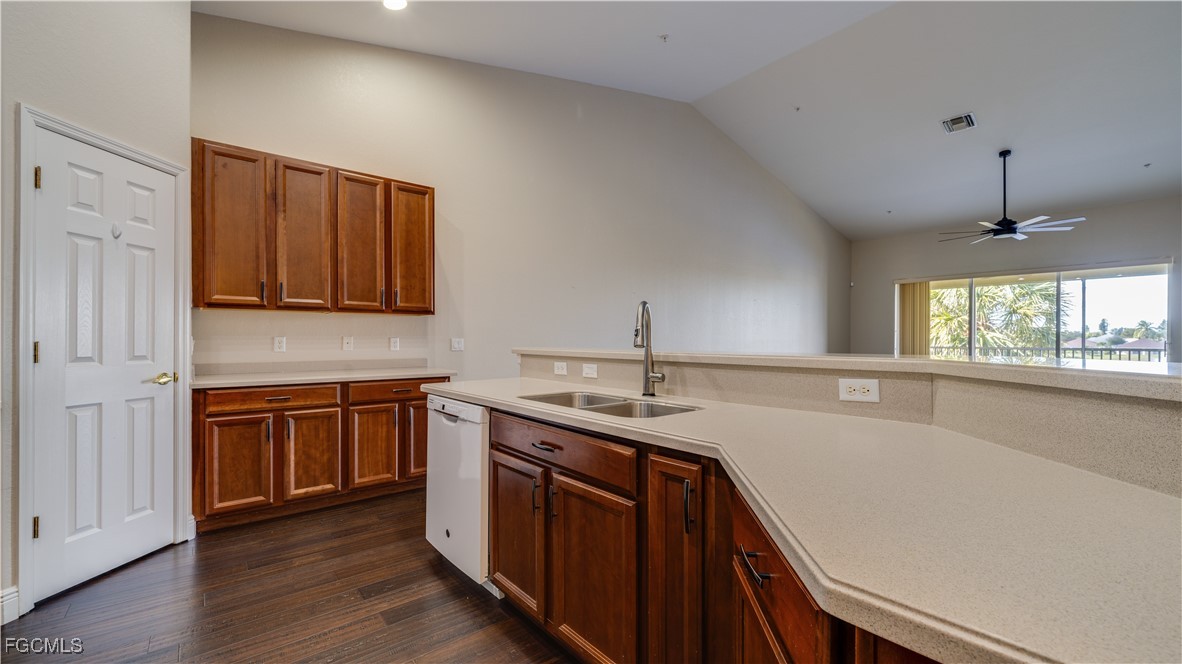 MOTIVATED SELLERS! Enjoy stunning sunset skies from your balcony in this lake view 2/2 condo in the desirable community of Calusa Palms. This condo also offers a flexible den space ideal for a home office, exercise area, or playroom. Inside, you'll find elegant vaulted ceilings, engineered wood flooring in the main living areas, and comfortable carpet in the bedrooms. Recent updates include a new roof in 2023, 2019 AC system, a 2025 washer and dryer, and a 2024 dishwasher—giving buyers peace of mind. Nestled within a gated community, residents enjoy a resort-style lifestyle with amenities such as a community pool, bocce ball, pickleball, tennis, play area, clubhouse, and a fitness room. Ideally located close to shopping, dining, healthcare, and the beautiful beaches of Sanibel/Captiva Islands and Fort Myers Beach!