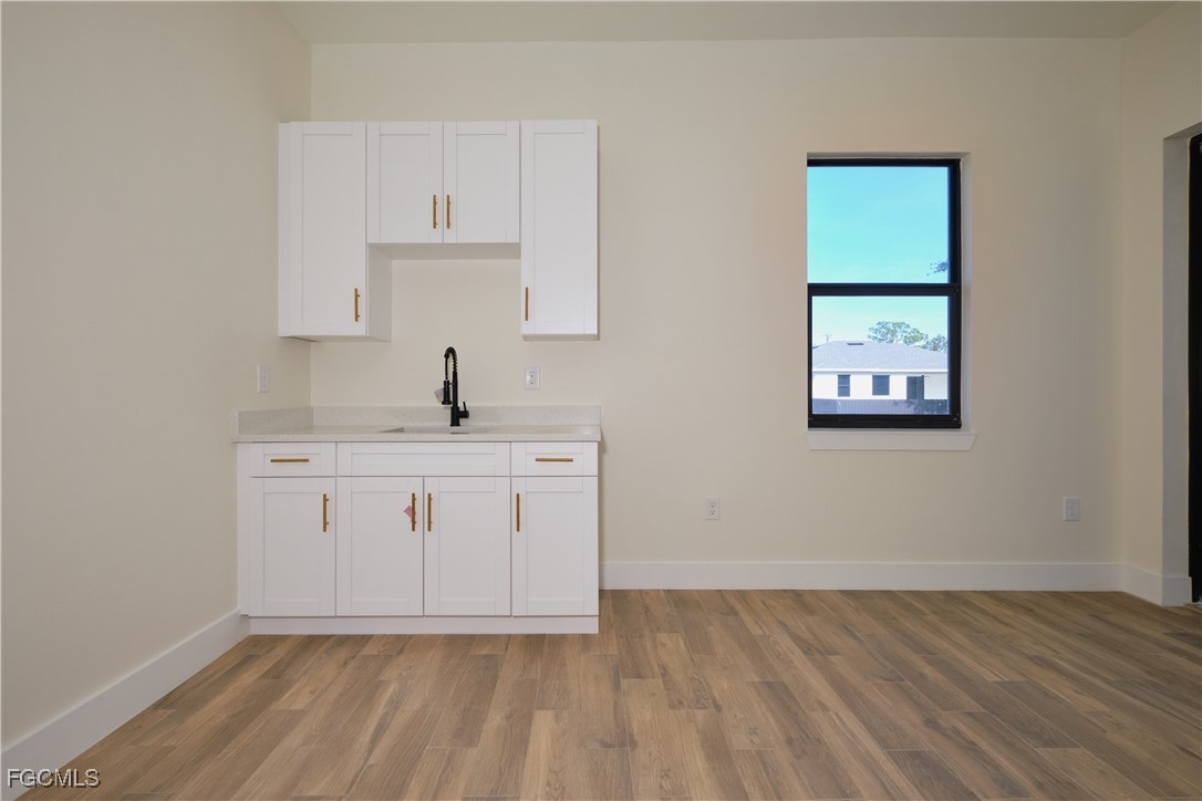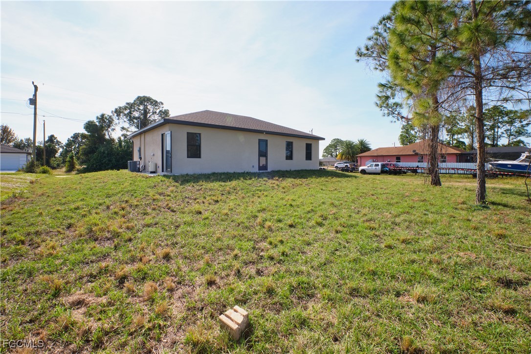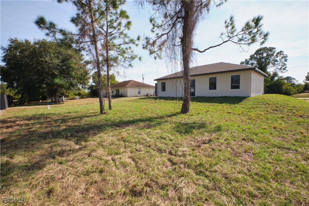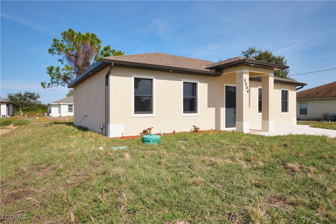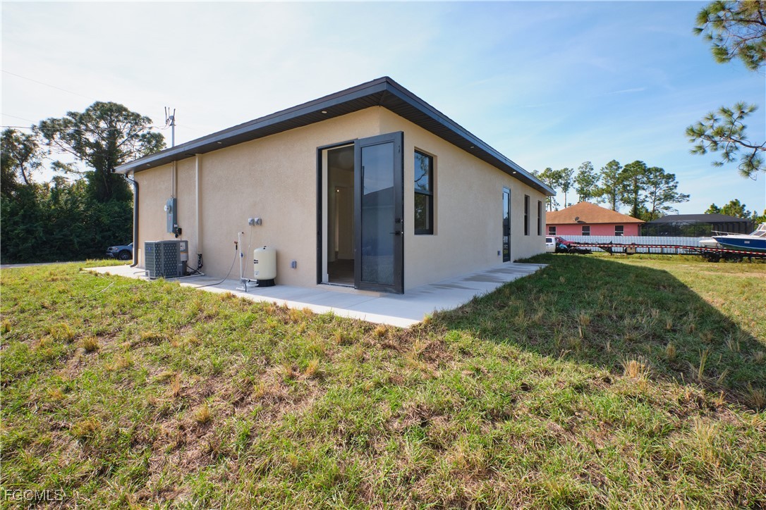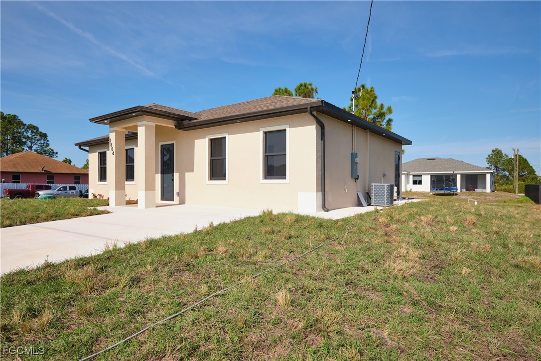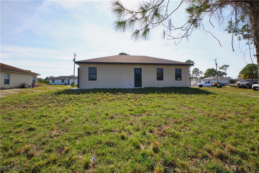 Great location in SW Lehigh close to Gunnery. Price perfectly set to sell! Don’t miss this incredible opportunity to own a beautiful, modern, and cozy single-family home with a fully private efficiency studio—complete with its own kitchenette and separate entrance offering true income-producing potential and a rare multigenerational living setup in the heart of Lehigh Acres. This move-in-ready gem features 4 bedrooms and 3 full bathrooms with a flexible layout that allows you to live in the main home while renting out the studio, or enjoy the entire space for extended family. Loaded with upgrades, the home showcases wood-style ceramic plank flooring, white quartz countertops with a stunning waterfall-edge island bar for extra seating and wine cabinet, modern backsplash, impact windows and smoked hurricane-impact glass doors, luxury spa-style shower systems with built-in shower niches, LED lighting, tankless water heater, large baseboards, ceiling fans, Sherwin-Williams Super Paint, elegant trim details, a wine cabinet, fresh sod, and a clean, inviting backyard. The long double driveway provides excellent extra parking for approx 6 cars, making this almost a duplex-style investment without the duplex price tag. Located near Gunnery Rd, restaurants, shops, parks, and more, this property offers unbeatable style, comfort, and investment potential all in one. This one won’t last—schedule your showing today and come see why this home is the best deal in town! (No garage, but the extended double driveway offers ample parking.)
