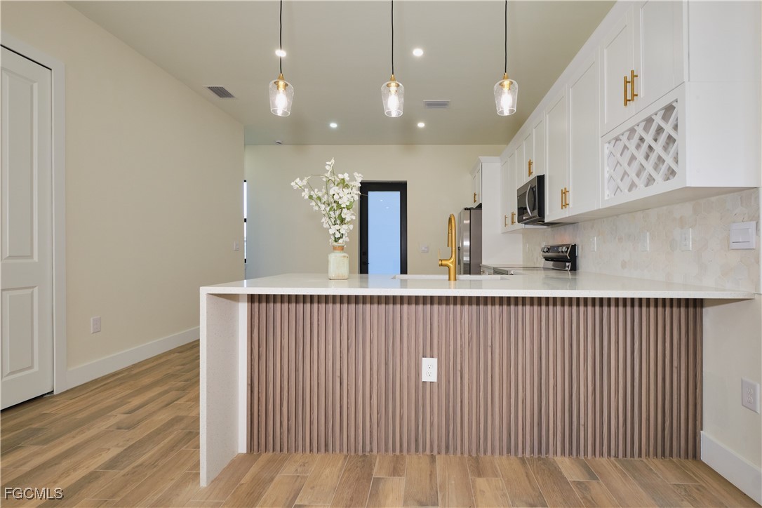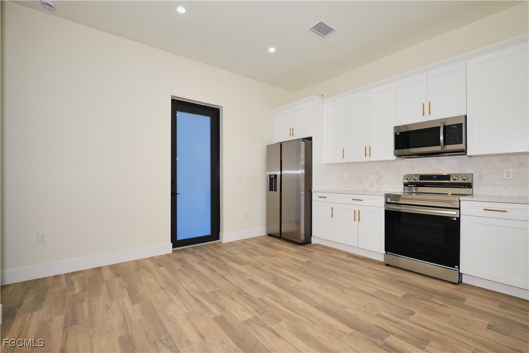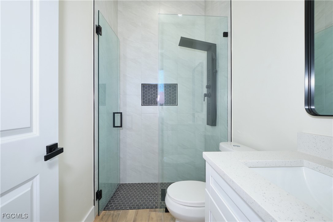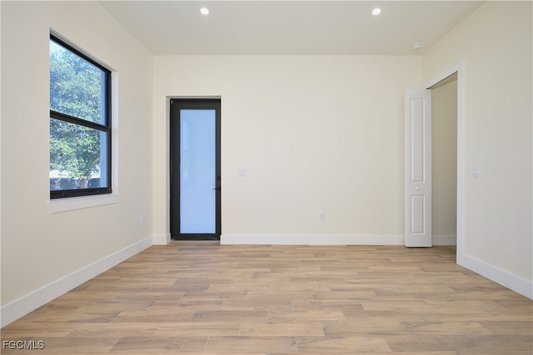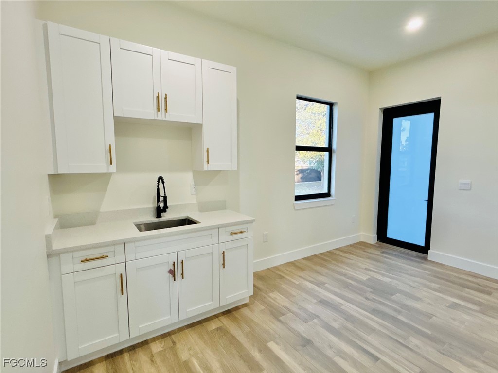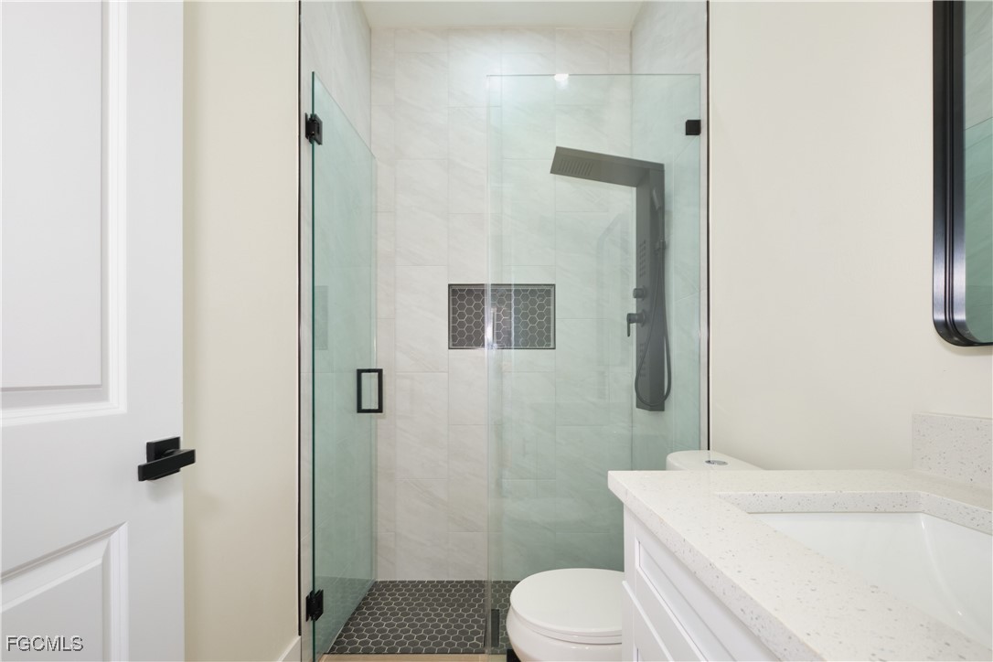 Great location in SW Lehigh close to Gunnery. Price perfectly set to sell! Don’t miss this incredible opportunity to own a beautiful, modern, and cozy single-family home with a fully private efficiency studio—complete with its own kitchenette and separate entrance offering true income-producing potential and a rare multigenerational living setup in the heart of Lehigh Acres. This move-in-ready gem features 4 bedrooms and 3 full bathrooms with a flexible layout that allows you to live in the main home while renting out the studio, or enjoy the entire space for extended family. Loaded with upgrades, the home showcases wood-style ceramic plank flooring, white quartz countertops with a stunning waterfall-edge island bar for extra seating and wine cabinet, modern backsplash, impact windows and smoked hurricane-impact glass doors, luxury spa-style shower systems with built-in shower niches, LED lighting, tankless water heater, large baseboards, ceiling fans, Sherwin-Williams Super Paint, elegant trim details, a wine cabinet, fresh sod, and a clean, inviting backyard. The long double driveway provides excellent extra parking for approx 6 cars, making this almost a duplex-style investment without the duplex price tag. Located near Gunnery Rd, restaurants, shops, parks, and more, this property offers unbeatable style, comfort, and investment potential all in one. This one won’t last—schedule your showing today and come see why this home is the best deal in town! (No garage, but the extended double driveway offers ample parking.)