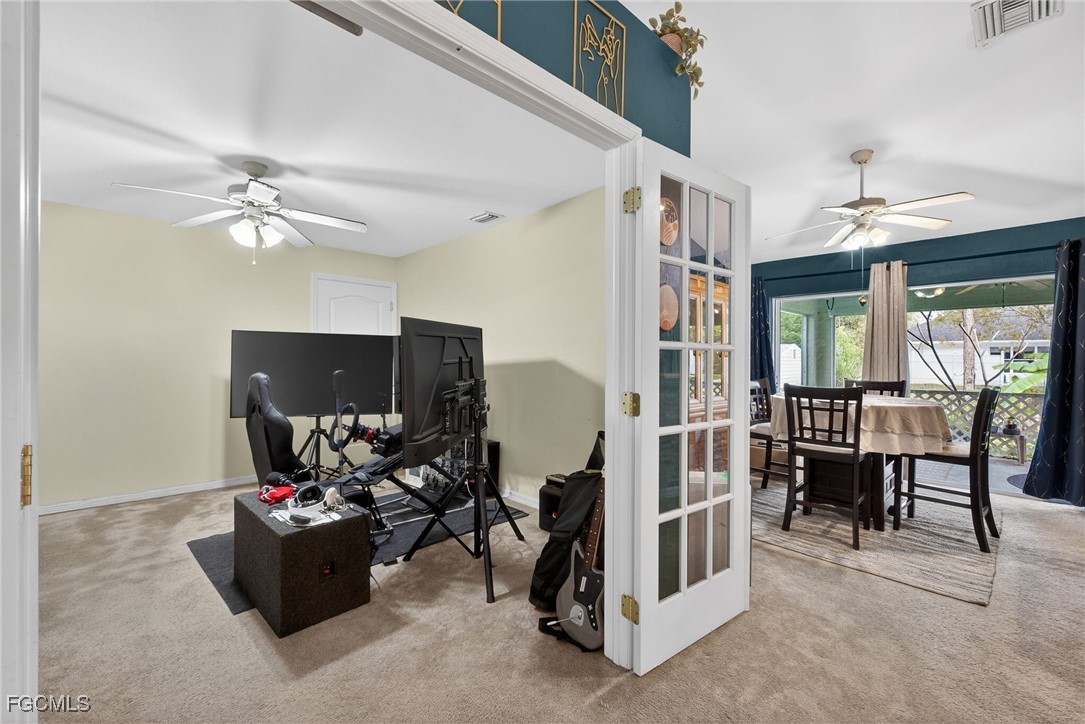 The interior boasts a versatile Den with French doors that could easily serve as a 4th bedroom or home office. The master suite is a private retreat, complete with a large walk-in closet and a master bath featuring dual sinks and a separate Roman tub and shower. Step outside to enjoy the Florida lifestyle in the screened lanai the entrance to a yard full of fruit trees like Mangos, Papaya and plenty of Bananas or just relax on the inviting open front porch. This home is conveniently located near restaurants, shopping, medical facilities and a short drive to the white sandy beaches of Sanibel and Fort Myers