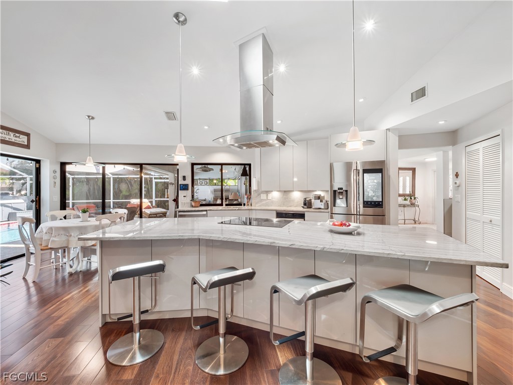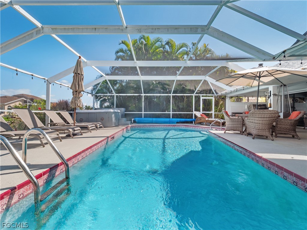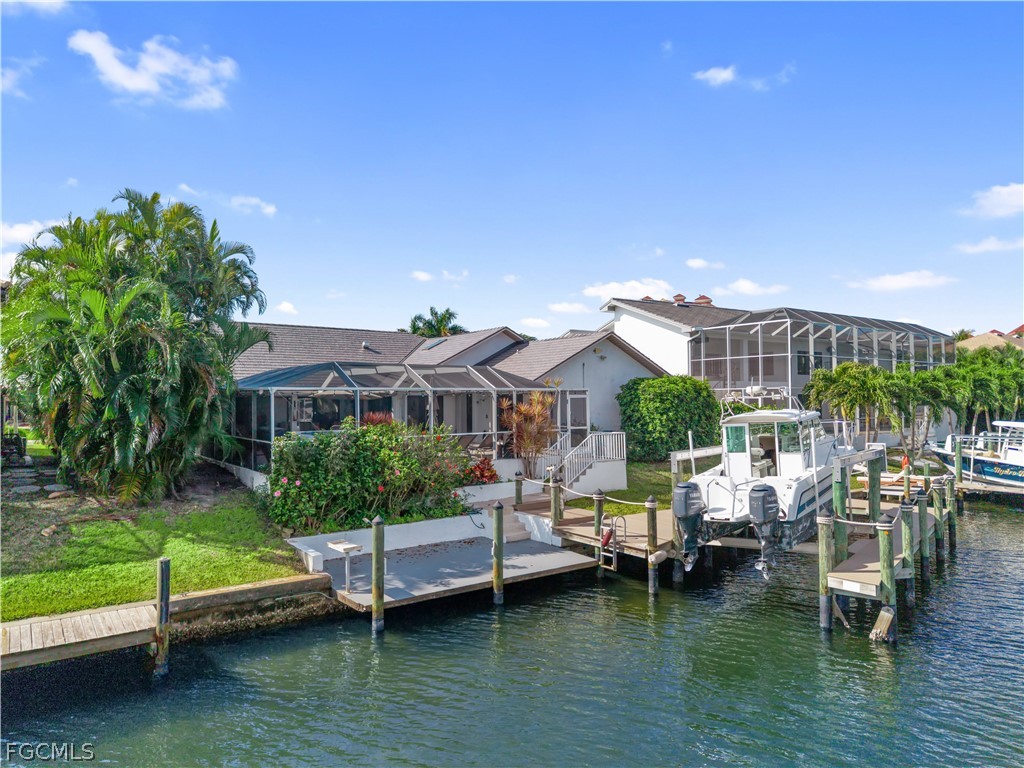 CALLING ALL BOATERS! If you’ve been looking for true sailboat access just minutes to the Gulf, this is the one. Located in one of the most desirable neighborhoods in SW Cape Coral and just a short walk down the street to Cape Harbour, this home offers the boating and waterfront lifestyle people move here for. From your backyard you have deep, unrestricted sailboat access with no bridges, a composite wrap-around dock and 12,000 lb boat lift, so you can be out to open water in minutes. Inside, the home offers nearly 2,500 sq ft of living space with 3 large bedrooms, 2.5 bathrooms, multiple living areas, and both formal and casual dining spaces. The kitchen has been beautifully updated with quartz countertops, custom cabinetry, high-end appliances, and gorgeous Brazilian chestnut wood flooring that adds warmth throughout the main living areas. Major upgrades include a 180 mph metal roof, new CPVC plumbing throughout the entire home, new brick paver driveway, whole house hurricane protection, and a dual fuel generator. Step outside to the large covered lanai overlooking the heated saltwater pool and hot tub, the perfect spot to relax after a day on the water or enjoy Southwest Florida evenings and sunsets. And the lifestyle here is hard to beat — walk down the street to Cape Harbour where you can enjoy waterfront restaurants, live music, boating events, boutique shops, and the marina. Homes in this location rarely come available because once you live this close to Cape Harbour and the Gulf, you don’t want to leave. Schedule your private showing today.